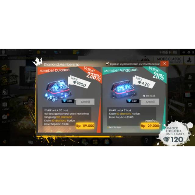 Membership mingguan free fire kiosgamer. Top upbeli diamond free fire ff murah dan cepat di unipin. Jual game online free fire diamond ff membership mingguan 60 diamond hanya seharga rp 32025. Tidak perlu redeem ke kiosgamercoid. Garena voucher free fire 1795 diamond. Unipin cara terbaik top upbeli diamond free fire. Adanya fitur baru membership free fire bulanan dan mingguan yang bisa kalian beli ini bisa memberikan banyak sekali keuntungan bagi kalian.