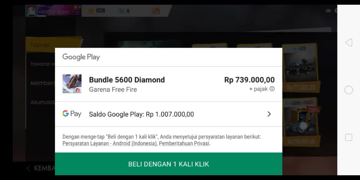 Setelah berhasil melakukan top up di google play store pengguna dapat masuk ke permainan free fire dan melakukan pembelian diamond. Sebagai salah satu game battle royale yang sedang di gandrungi masyarakat free fire telah menjadi mobile game nomor 1 di 22 negara serta top 5 mobile games di lebih dari 50 negara. Garena menyediakan enam pilihan untuk jumlah diamond yang ingin dibeli yaitu 100 diamond 310 diamond 520 diamond 1060 diamond 2180 diamond dan 5600 diamond. Tri memberikan promo eksklusif kepada pemain free fire yaitu bonus 50 untuk setiap pembelian diamond free fire menggunakan pulsa tri. Di tampilan selanjutnya anda akan di arahkan tentang pembelian diamonds sesuai dengan dollar yang anda miliki. Selanjutnya pilih item yang akan anda beli misalnya bundle costum silahkan anda lakukan top up.