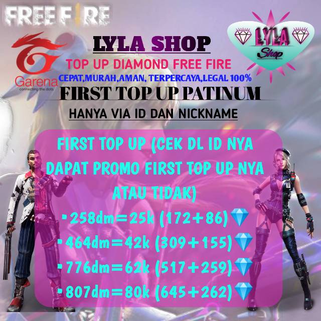 Free fire diamond top up. Each 10 minute game places you on a remote island where you are pit against 49 other players all seeking survival. You can get a 100 top up bonus by buying diamonds from here. Budi top up diamond free fire di codashop sejumlah 70 diamond maka budi hanya mendapatkan 1x bonus untuk 70 diamond tersebut. Hai sahabat unipin merapat survivors. How to top up free fire diamond.